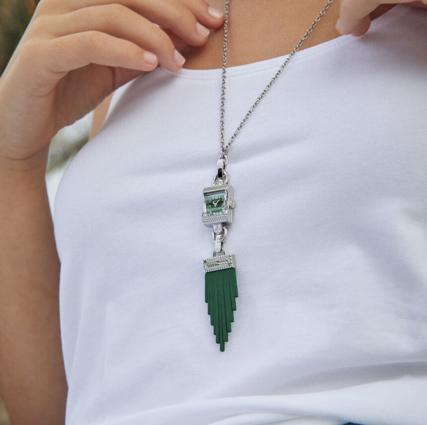 V tejto chvíli ide o najmenšie hodinky z našej ponuky (15 mm v priemere), sú zdobené v štýle Art Deco a nosia sa buď ako náhrdelník, alebo na klasickom náramku.