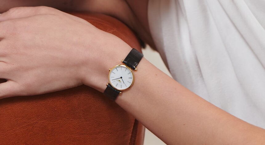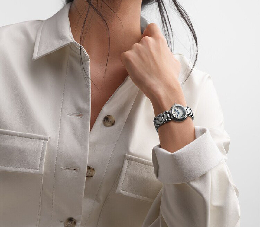 V súčasnej kolekcii je aj dámska varianta, ktorá má v priemere 24 mm. Ale pozor – vďaka netypickému tvaru aj uchyteniu náramku pôsobia na ruke väčšie.