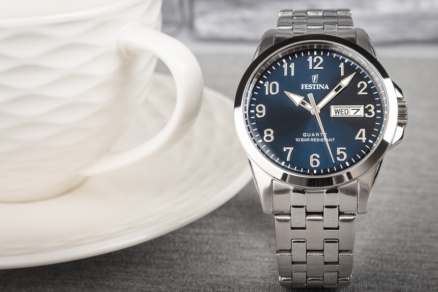 Hodinky Festina Classic Bracelet s elegantne jednoduchým puzdrom a tmavomodrým ciferníkom získali jednoduchý, ale efektný vzhľad klasických hodiniek. Dopĺňajú ho triezve ručičky s jemnou luminiscenčnou vrstvou a indexy s arabskými číslicami v kontrastnej bielej farbe, vďaka ktorým sú hodinky dobre čitateľné. Náramok z vysokokvalitnej nehrdzavejúcej ocele, podľa ktorého sú hodinky pomenované, pôsobí vkusným a elegantným dojmom.