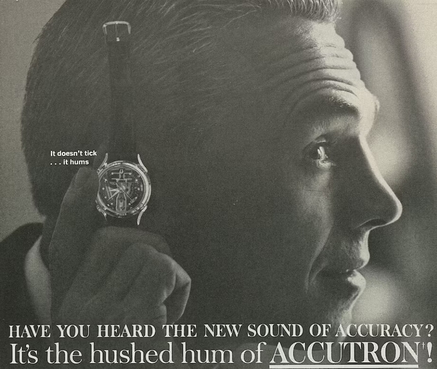 "Ak máte nespoľahlivé hodinky, ste nespoľahliví... Ak si chcete zabezpečiť svoju dôstojnosť, nehovoriac o práci, potrebujete hodinky Accutron." Takto mohla znieť vtedajšia reklama.
