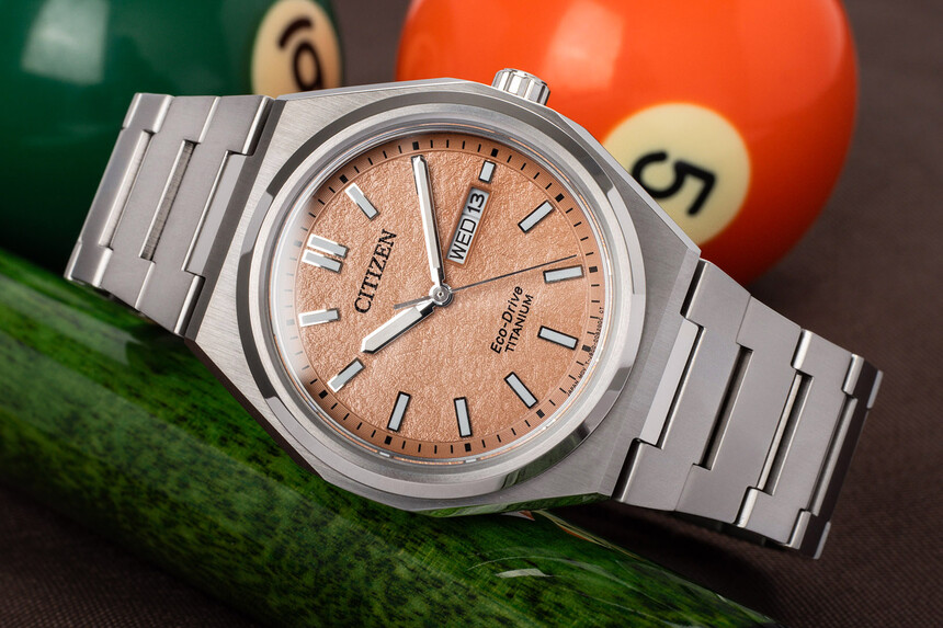 Teda, trošku väčšie, než by bolo potrebné. Priemer je udávaný na 40 mm a lug to lug 45 mm, ale ide o hodinky s integrovaným náramkom, a tam treba počítať s nejakým predĺžením nositeľnej dĺžky (t. j. reálnych lug to lug je 52 mm). Napríklad na pánskom zápästí, ktoré nemá ani 17 cm v obvode, môžu pôsobiť už priveľké. Čo však Citizen neskôr vyriešil.