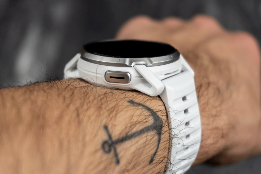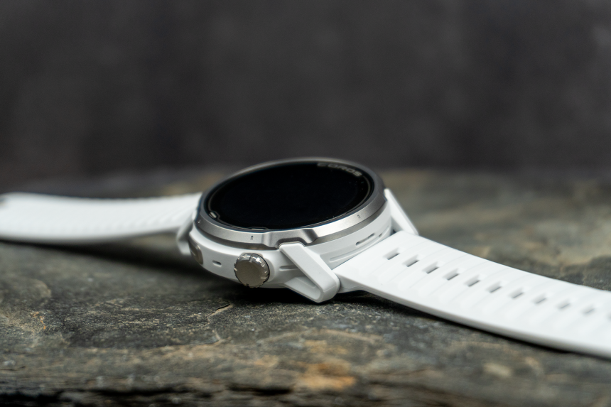 Ovládacie prvky sú na puzdre hneď tri – otočná korunka, spodné tlačidlo (prepína widgety na ciferníku a tiež vás vráti o krok späť) a nové akčné tlačidlo. To mi robí radosť, pretože rieši presne to, čo ma u iných značiek štve – jedným tlačidlom sa dostanete na mapu a zase späť. Dátové obrazovky sú teda horizontálne aj vertikálne. Predstavte si, že ste na druhej dátovej obrazovke, stlačíte akčné tlačidlo, ste na mape a opätovné stlačenie vás zase vráti na druhú obrazovku (nie na začiatok). To je super.