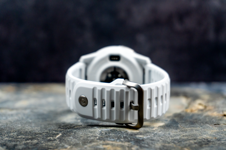 Máte dva priemery – 42 a 46 mm. A tiež dve farby pri každej veľkostnej variante – čiernu a bielu. Jeden materiál remienka – silikón. Úplne úprimne, to je krása. Povedzme si, aj tak si jednu z týchto farieb kúpi 90 % ľudí a tých zvyšných 10 % čiernu alebo bielu prežijú.