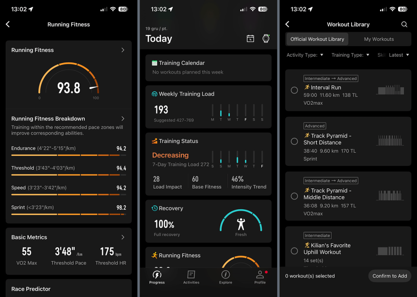 Coros si vždy pochválim aj z hľadiska tréningovej knižnice. Či už ide o jednotlivé tréningy, alebo celé tréningové plány, ťažko sa hľadá iná značka, ktorá by to mala tak nabité ako Coros.