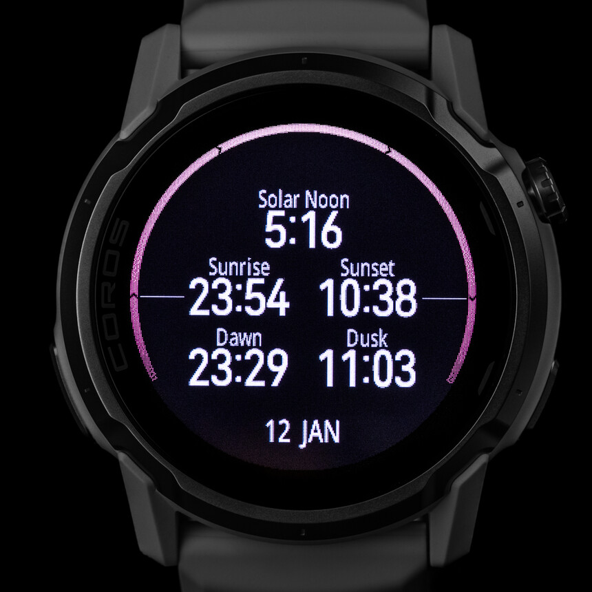 Tu mierne vystupuje Coros Apex 4. Ten totiž ako jediný z výberu používa MIP displej. Ten síce nie je taký farebný, kontrastný ani ostrý, ale je neustále rozsvietený a využíva slnečné lúče na svoje vlastné presvietenie. Čím ostrejšie svetlo naň svieti, tým lepšie je displej čitateľný. Ja osobne tento typ displeja preferujem. Dôvod je jednoduchý – nerád mávam rukou, aby sa displej rozsvietil.