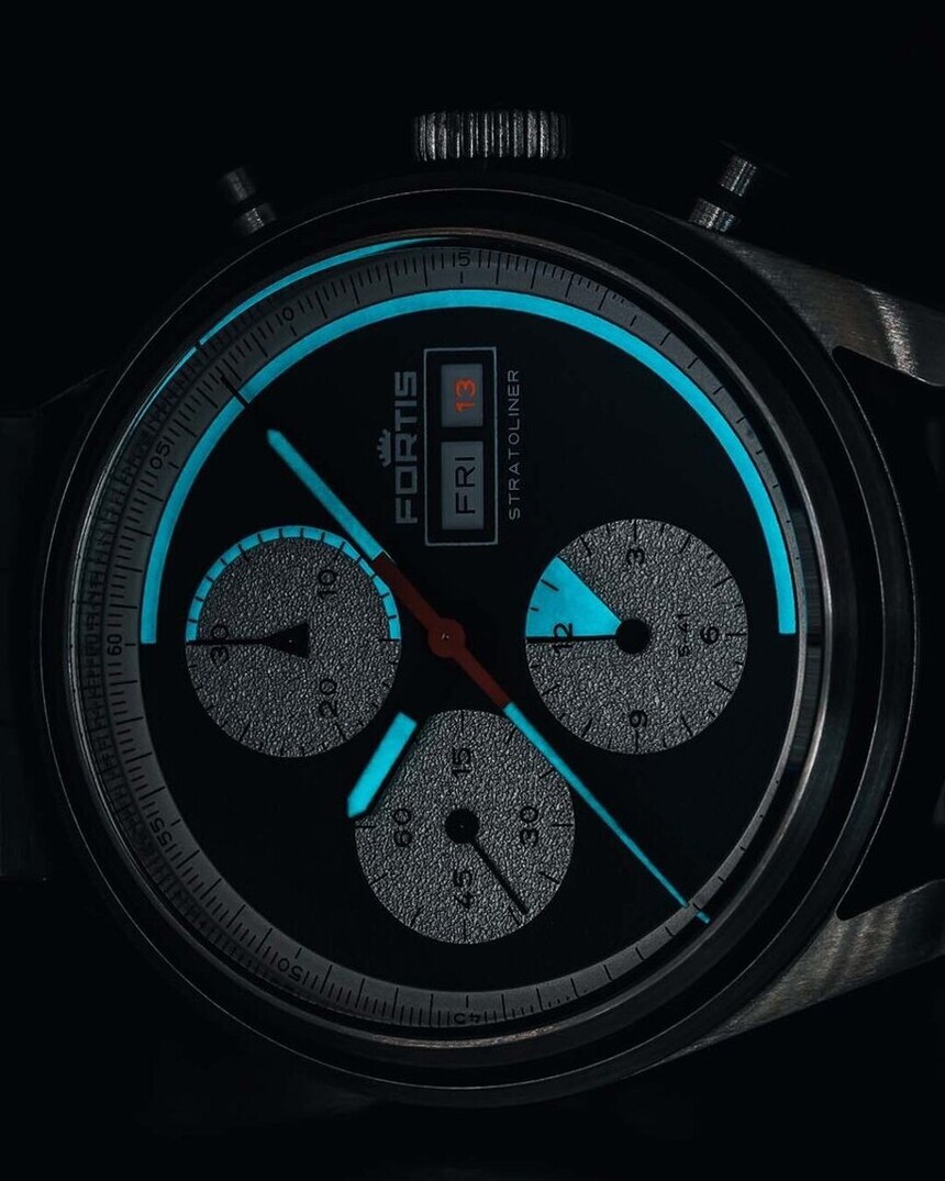 Medzi sklíčkom a číselníkom nájdeme vyrytý nápis „DER HIMMEL IST NICHT DAS ENDE DER WELT“, čo v preklade znamená niečo ako „Nebo nie je koniec sveta“. Čo je však extrémne zaujímavé na Stratolineroch, je luminiscencia.