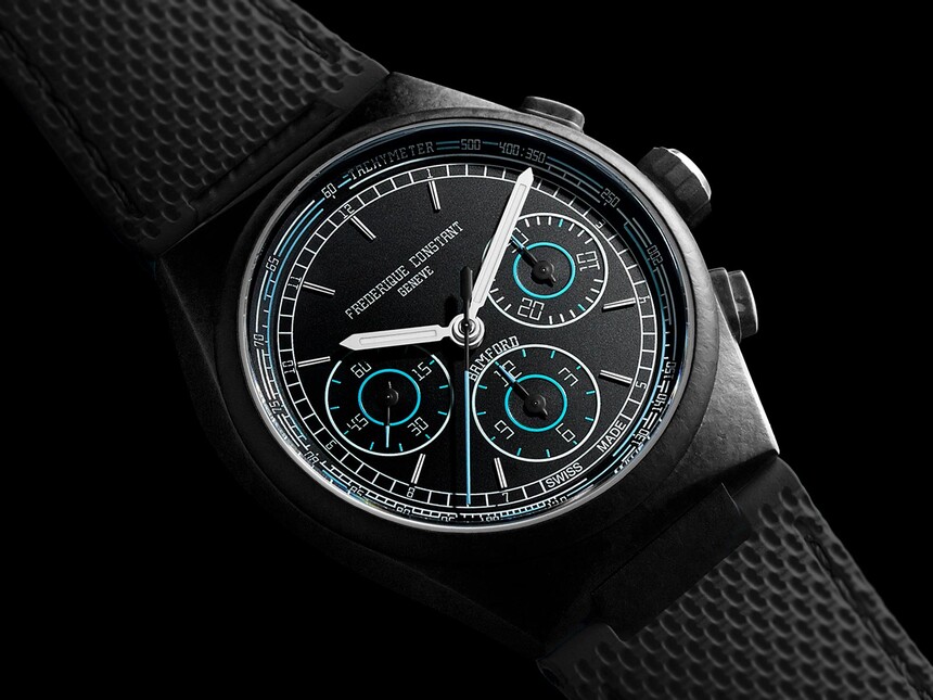 Zachované zostalo puzdro s priemerom 41 mm aj jeho tvar, rovnako ako integrovaný remienok, ktorý len tak nevymeníte za univerzálny typ. Puzdro má vodotesnosť 100 m, je kryté konvexným zafírovým sklíčkom s antireflexnou vrstvou a vo vnútri beží 4 Hz kaliber FC-391 s automatickým chronografom a rezervou chodu 60 hodín. Tento strojček mimochodom stojí na osvedčenom kalibri od značky, ktorá, rovnako ako Frederique Constant, spadá pod Citizen Group – ide o La Joux-Perret a ich kaliber L-100 (ktorý je zameniteľný napríklad s ETA 7750).