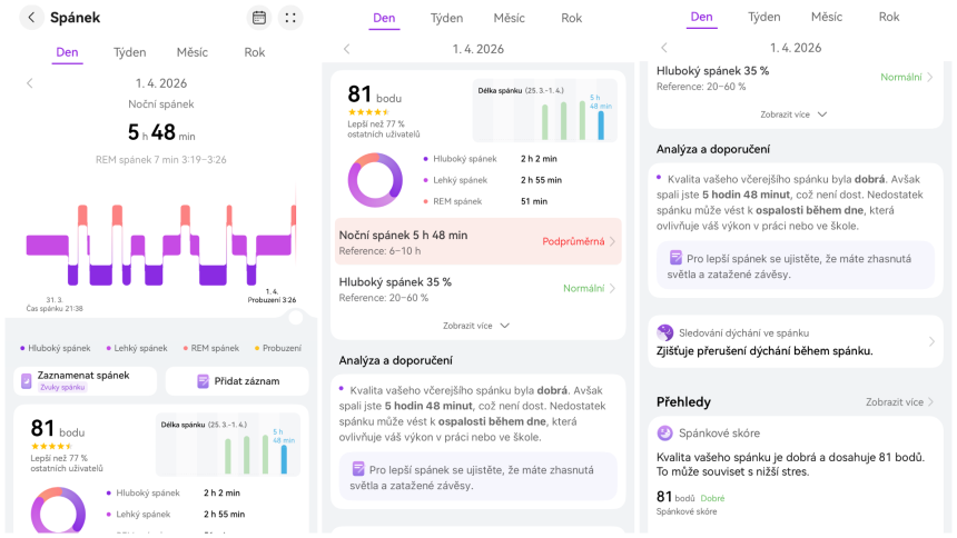 Lifestylové funkcie sú totiž pomerne nabité a vzhľadom na štandard Huaweia neokyptené. Začal by som monitoringom spánku, ktorý mi z môjho testovania prišiel celkom podhodnocovaný, hlavne v prípade dĺžky spánku. To je však o Huaweii všeobecne známe, takže k žiadnemu prekvapeniu nedošlo.