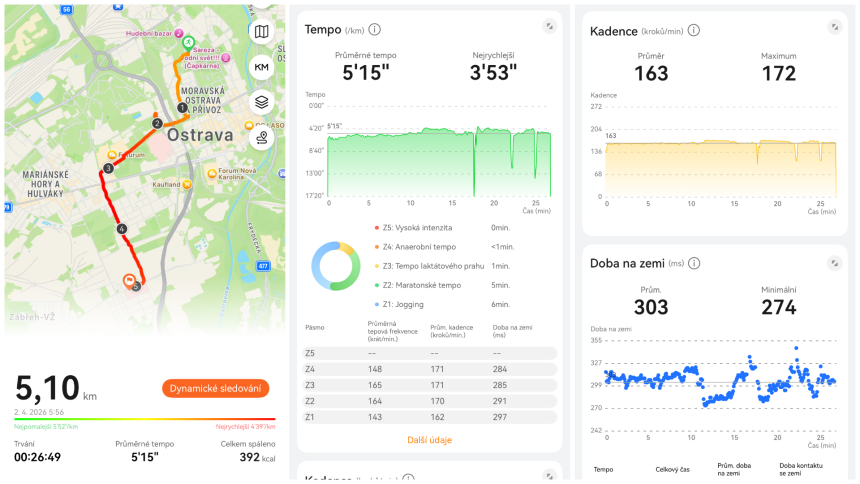 Síce v mnohých prípadoch dobre neukazoval presnú stranu cesty, po ktorej som bežal, niekedy dokonca utekal dosť mimo. Napriek tomu mi kilometre pípali úplne rovnako ako na mojich hodinkách, ktoré boli presnejšie. Jasné, brutálna presnosť sa nečakala, ale toto si myslím, že je na náramok úplne v poriadku.