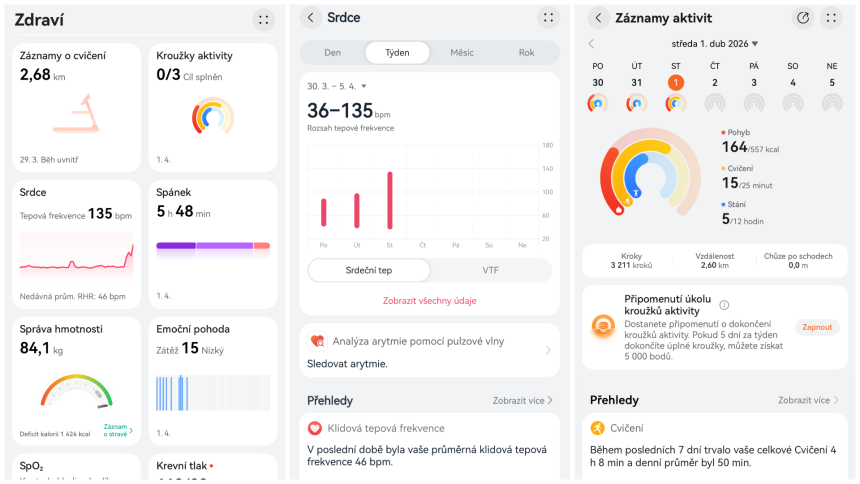 Okrem toho automatického merania srdcovej frekvencie som našiel ešte ďalší kompromis. Nejakým záhadným spôsobom chýbajú typické Zdravotné trojlístky. Máme tu bežeckú dynamiku, máme tu Analýzu arytmie, ale tak základná funkcia, ako sú trojlístky, nie. Nuž, asi nemôžeme mať toľko šťastia a mať všetko.