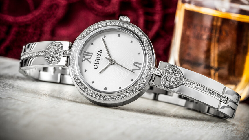 Hodinky Guess definuje odvaha, výraznosť, nápadné zdobenie a šperkový lesk.