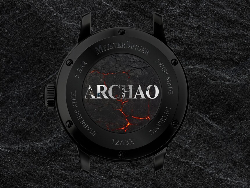 Hodinky dostali silný charakter aj meno. Slovo „Archao“ je odvodené od gréckeho slova „archaios“, čo znamená „prvotný“ alebo aj „prapôvodný“. Aj preto sa na zadnom viečku odohráva dynamická scéna evokujúca praskanie zeme a vyvierajúce jadro Zeme.