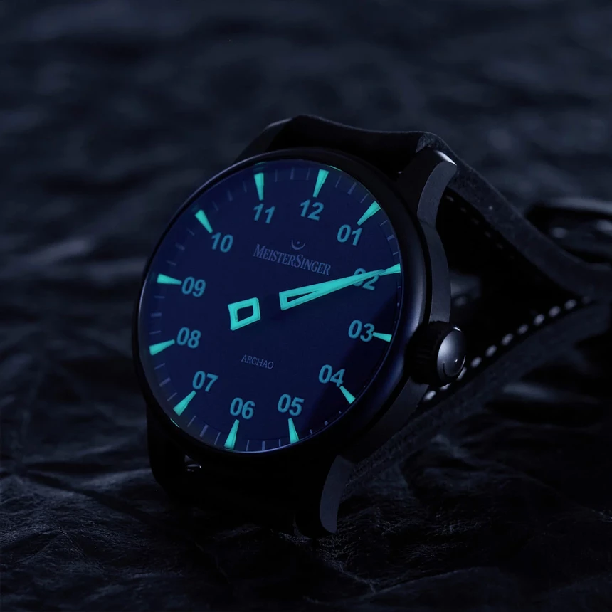 MeisterSinger Archao zatriasli typicky decentným štýlom, na aký sme pri tejto mladej nemeckej značke zvyknutí. Pričom zachovali všetky prvky typické pre MeisterSinger, len ešte nadsadenejšie a akosi „zvýraznenejšie“ než kedykoľvek predtým. Extrakcia podstaty jednoručiek.