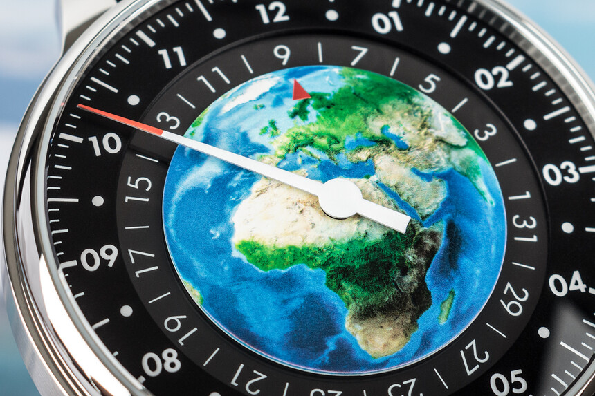 Už na prvý pohľad tieto hodinky pôsobia jedinečným dojmom. Nie kvôli tomu, že majú len jednu ručičku, ale kvôli zobrazeniu Zeme v strede číselníka. Podľa výrobcu to má predstavovať pohľad na našu planétu z vesmíru. Obrázok je naviac vypuklý a farby majú zvláštnu „zamatovú“ textúru. Vďaka tomu sa vám zdá, že na planétke sú naozaj pohoria a pralesy. Veľmi pekný detail, s ktorým som sa ešte nestretol.
