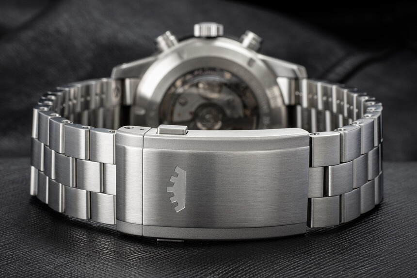 Vodotesnosť je 100 metrov a hodinky sú na výraznom čiernom prešívanom teľacom remienku. Spojenie nemeckých hodiniek s nemeckým veteránom je vkusné a premyslené, ale sú to hodinky samy osebe, ktoré priťahujú pozornosť. Už len tými detailmi, ako je zapracovaná dátumovka do sekundového subčíselníka alebo zakrivená minútová ručička.
