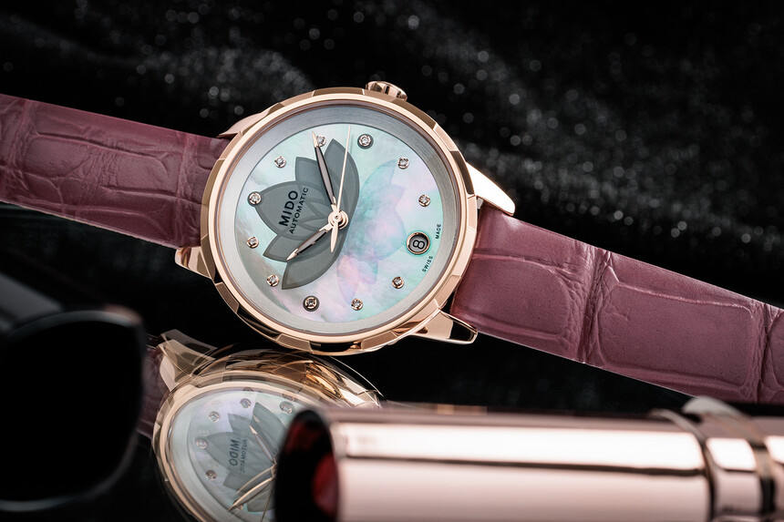 Zaujmú unikátnym číselníkom s motívom lotosu, vrstvenou perleťou a odtieňmi ružovej a modrej, ktoré evokujú večerné svetlo na hladine. Navyše majú netradične poňatú luminiscenciu.