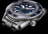 Číselník v sýtej kobaltovej modrej pôsobí mimoriadne elegantne – najmä v kombinácii s keramickou lunetou, ktorej číslice svietia vďaka luminiscencii, a s oranžovými ručičkami chronografu, ktoré pridávajú športový kontrast.