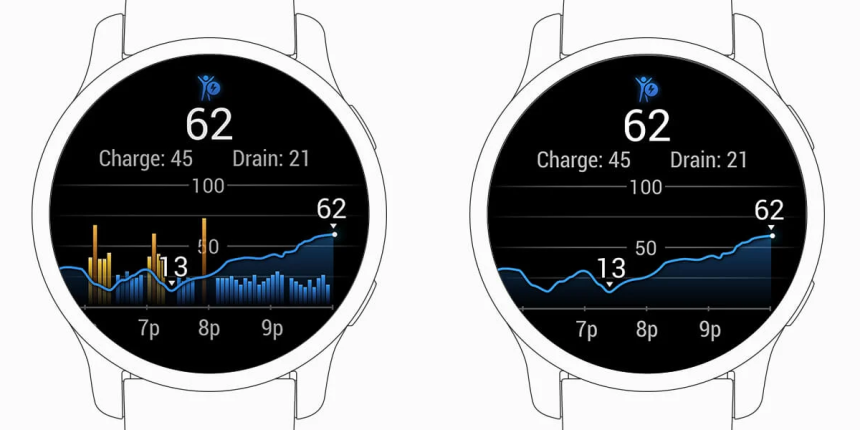 Myšlienka tejto funkcie je pomerne jednoduchá a praktická – vyjadriť nabitie vášho tela na stupnici od 0 do 100. Vo väčšine prípadov do výpočtu vstupujú premenné ako športové aktivity, stres, kvalita spánku a pod.