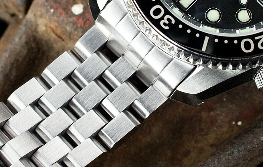 Vzhľad päťdielneho článkového náramku je elegantnejší ako typ Oyster. Je tiež pohodlnejší na nosenie a ľahšie sa prispôsobuje veľkosti vášho zápästia. Náramok je usporiadaný tak, že hrubšie bočné články, často s kontrastnou matnou povrchovou úpravou, sú umiestnené okolo troch úzkych, vysoko leštených článkov.