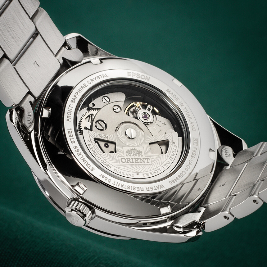 Tiká frekvenciou 3 Hz a má 22 kameňov. Presnosť by údajne mala byť od +25 do -15 sekúnd za deň, čo na relatívne dostupné hodinky s takým množstvom komplikácií nie je podľa mňa vôbec zlé. Výhodou je, že Orient nepredáva strojčeky tretím stranám, takže máte naozaj čisto manufaktúrny strojček, ktorý nenájdete u inej značky, než je Orient.