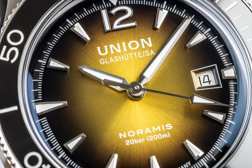 Dynamika číselníkom rozhodne nechýba. Pritom je čitateľnosť ukážková a priamočiary dizajn vychádza z tradičných potápačských hodiniek. Moderným prvkom sú však výrazné číselníky so sunburstom, ktorý je naozaj nádherný, zvlášť v kombinácii s prechodom k okrajom. A to pri všetkých farbách, od tlmenejšej antracitovej, cez zelenú, modrú až po luxusne žiariacu zlatú.