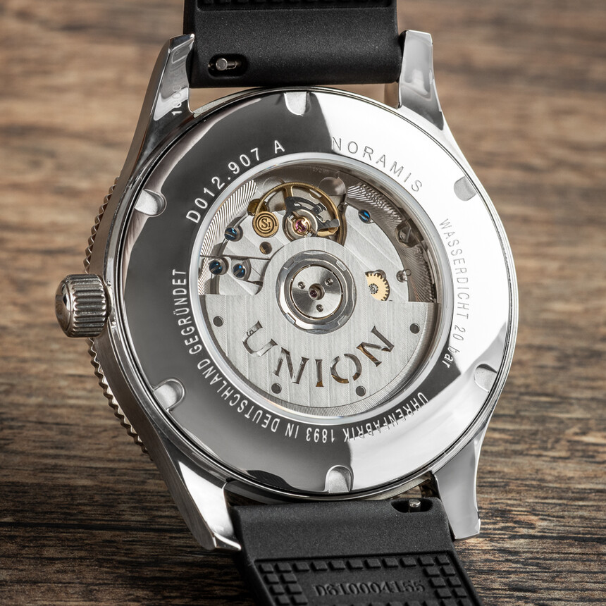 Union si tiež vyrába vlastné jemne skeletonované rotory. Zdobenie strojčeka si ostatne môžete pozrieť do detailov, pretože Union pri svojich Noramis Sport ponecháva otvorený priezor cez zafírové sklíčko.