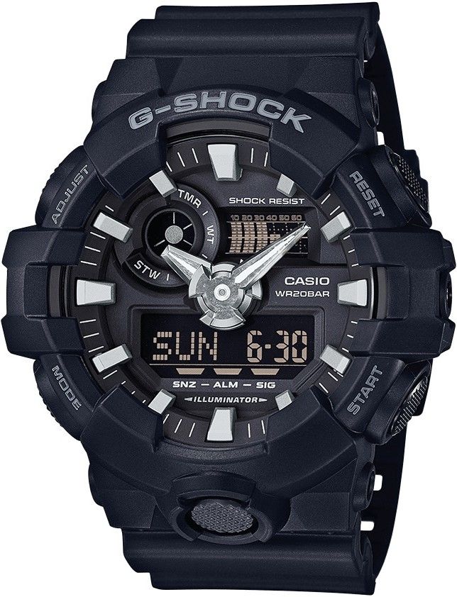 Z prehľadu funkcií, ktorými GA-700 disponujú môžeme vyčítať trend, ktorým sa Casio snaží uberať (a tiež sa mu to darí), teda neustále sa zlepšovať a posúvať dopredu. Samozrejmosťou sú základné G-Shockovské funkcie ako odolnosť proti nárazu, vodeodolnosť 200M, stopky, alarm či automatický kalendár. Okrem tohto základu tu ale nájdeme aj napr. funkciu „upratania ručičiek" kedy sa pri používaní digitálneho displeja premiestnia analógové ručičky tak, aby neprekážali vo výhľade. Praktická je aj možnosť nastaviť si domáci a svetový čas, ktoré je možné prehodiť stlačením jedného tlačidla.