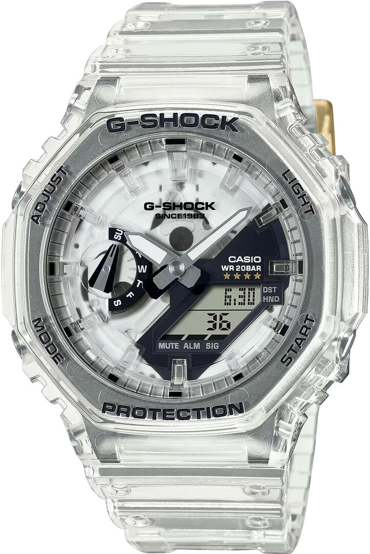Vďaka použitiu karbónu, teda konštrukcia Carbon Core Guard, sú hodinky ľahučké a ich „vnútornosti" sa podarilo zmestiť do puzdra vysokého len 11,8 mm, čo robí model GA-2100 snáď najtenšími G-Shockmi vôbec. Priemer puzdra, by sa dal (vo svete G-Shockov) nazvať skôr ako „podpriemer". Ale práve vďaka tomu sadnú hodinky dobre na ruku aj „menej obdareným" jedincom a ľahko sa schovajú pod rukáv.