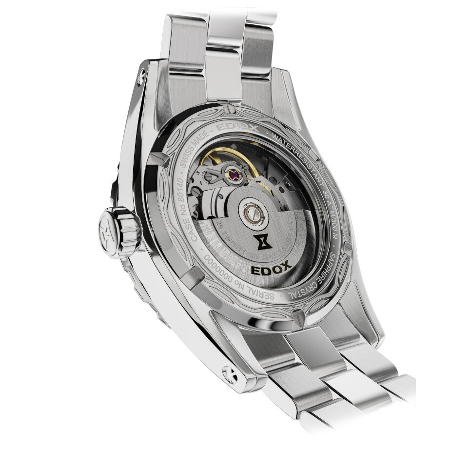 Mechanický s automatickým náťahom. Edox Caliber 80, Rezerva chodu 40h, 28.800 BPH (4Hz), 25 kameňov