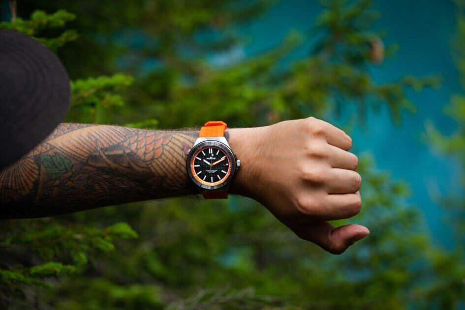 Pánske hodinky - pryžový remienok, ocelové puzdro, zafírové sklíčko. Všetky technické parametre nájdete nižšie