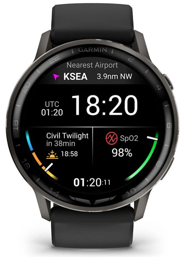 Bezdrôtovo prijíma letové plány z aplikácie Garmin Pilot Celosvetová databáza letísk Celosvetová databáza NAVAID a databáza križovatiek Pulzný oxymeter behom letu Stránka s informáciami o trasovom bode Trojosí kompas s HSI (vodorovný indikátor situácie) Viac časových zón so Zulu/UTC Výškomer s možnosťou nastavenia barometra