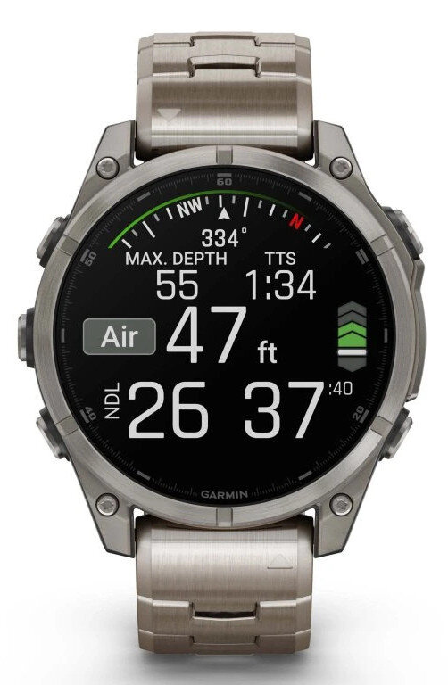 Bezpečnostná zastávka Doplnková kontrolka oznamujúca vynorenie potápača Hĺbkové zastávky Integrácia vzduchu Plánovač potápania PO2 Podpora pre Nitrox Podsvietenie Príliv/Odliv Synchronizácia záznamov o ponoroch do Garmin Dive Uzamknutie dekompresie neprebehlo Vlastná prestávka ukončenia potápania