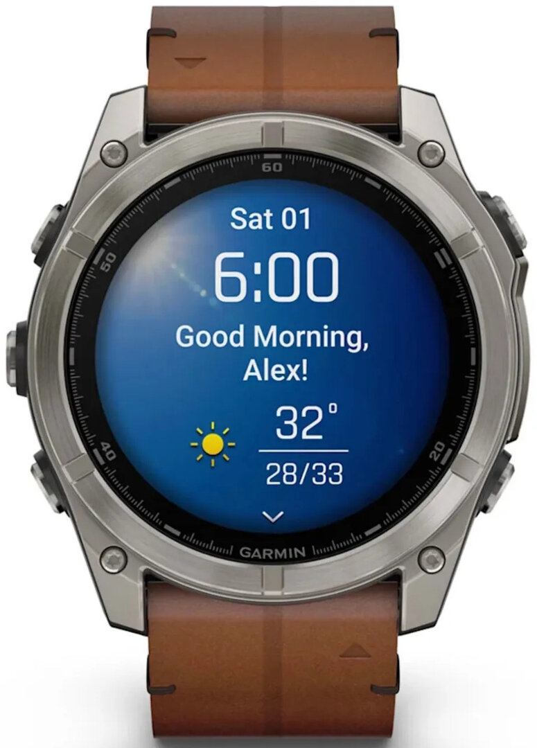 Garmin Fenix 8 AMOLED 51 mm, Exclusive Titanium Graphite Brown Leather Band (Premium) (+ náhradný remienok)