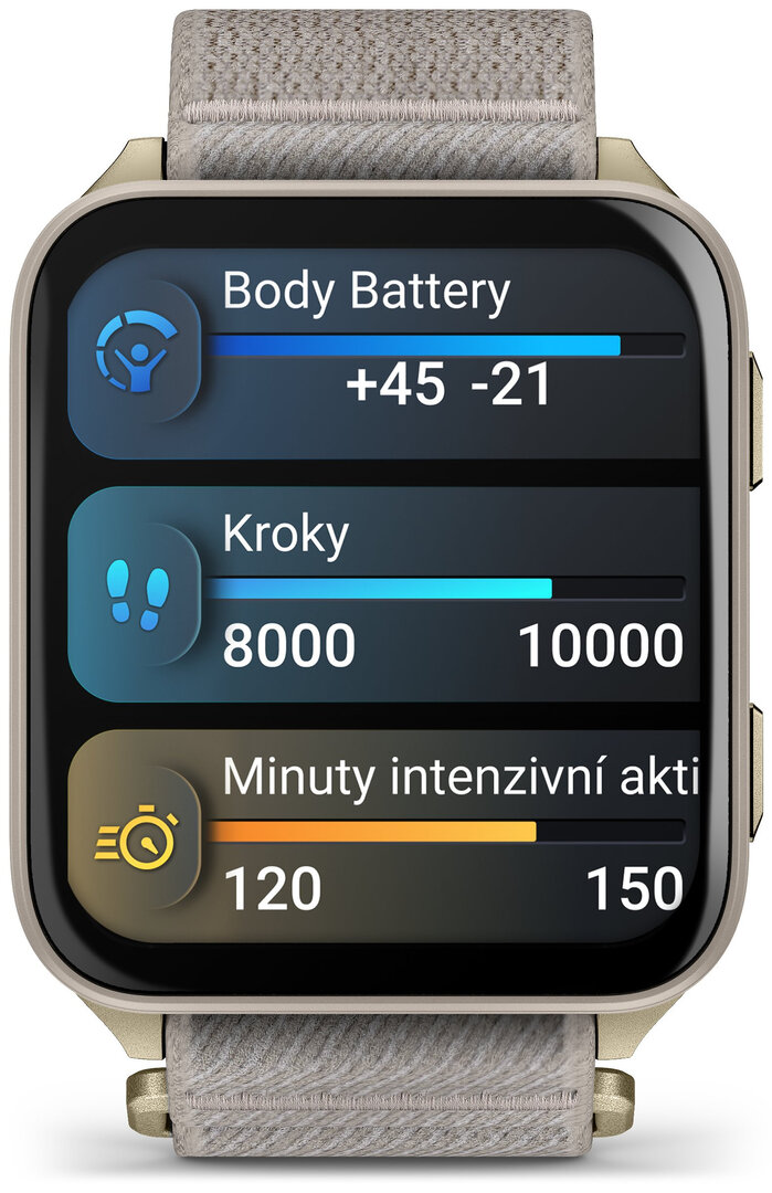 Alarmy abnormálneho srdečného tepu Celodenné sledovanie stresu Denný kľudový srdečný tep Zisťovanie zdriemnutia počas dňa Frekvencia dýchania (24x7) Health snapshot Hydratácia Menštruačný cyklus Monitor energie Body Battery Nasýtenie krvi kyslíkom Odpočet relaxačného dýchania Pokročilé sledovanie spánku Pripomenutie odpočinku Sledovanie srdečného tepu na zápästí Spánok Vek podľa kondície