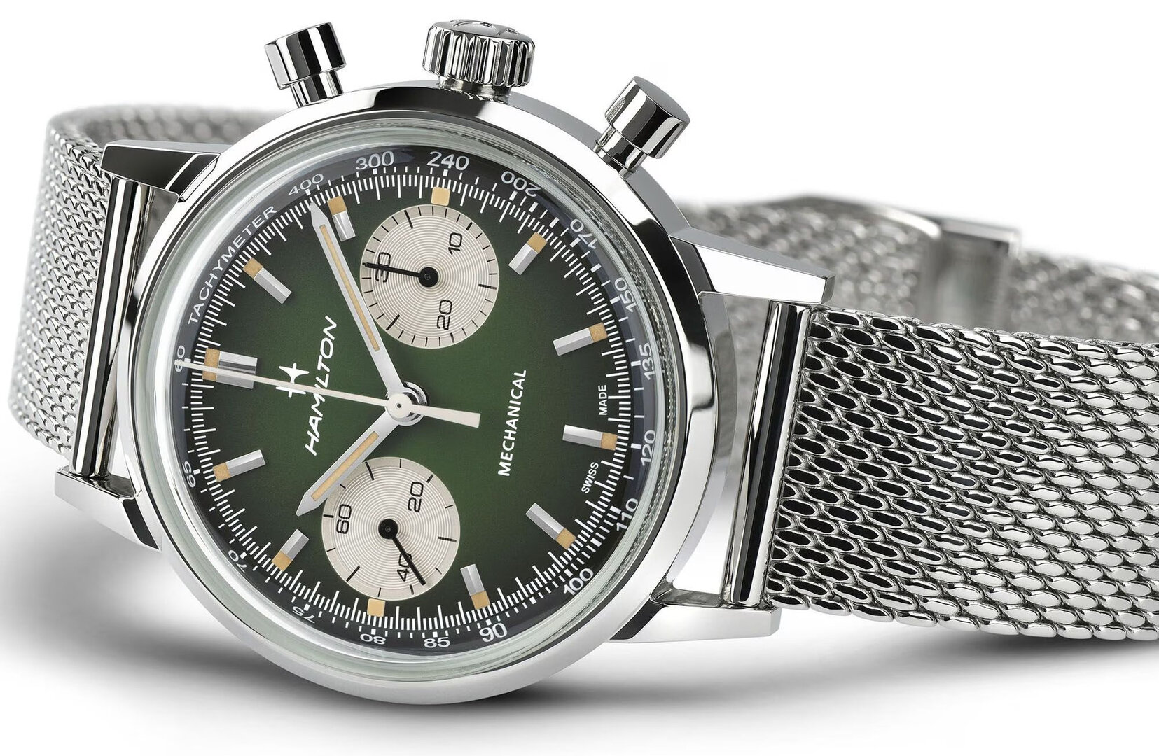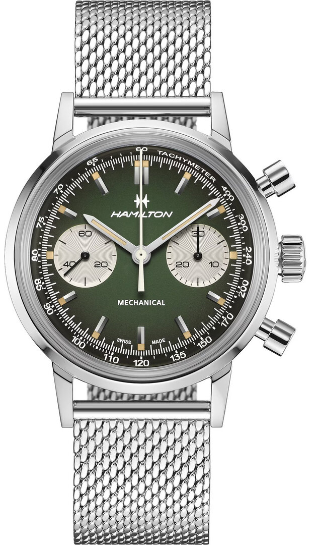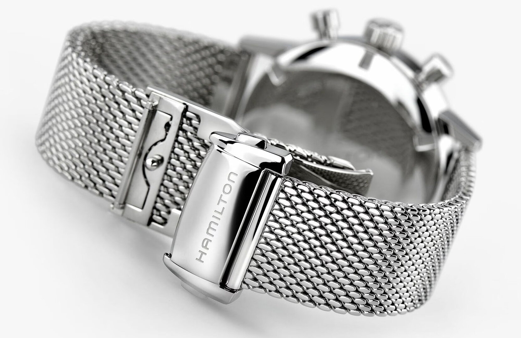 Ale aj v tom čase mali chronografy Hamilton švajčiarske strojčeky. Tak ako je to aj dnes. Vnútri modernej podoby sa nachádza strojček H-51, ktorý ETA vyrobila priamo pre Hamilton na základe svojho Valjoux 7753. Ponúka 60-hodinovú rezervu chodu pri zachovaní modernej frekvencie 28 800 polofrekvencií za hodinu.