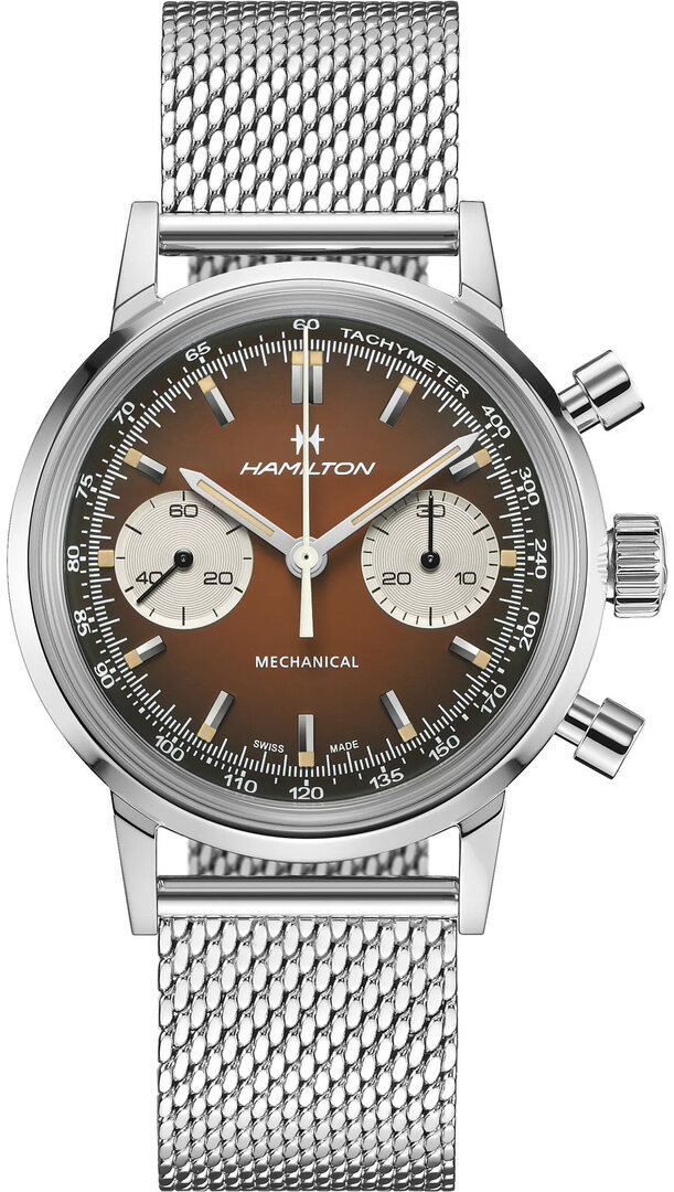 Ale aj v tom čase mali chronografy Hamilton švajčiarske strojčeky. Tak ako je to aj dnes. Vnútri modernej podoby sa nachádza strojček H-51, ktorý ETA vyrobila priamo pre Hamilton na základe svojho Valjoux 7753. Ponúka 60-hodinovú rezervu chodu pri zachovaní modernej frekvencie 28 800 polofrekvencií za hodinu.