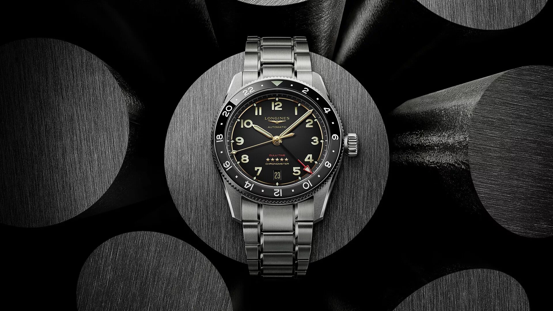 Hodinky Longines Spirit Zulu Time Automatic Titanium GMT Chronometr L3.802.1.53.6