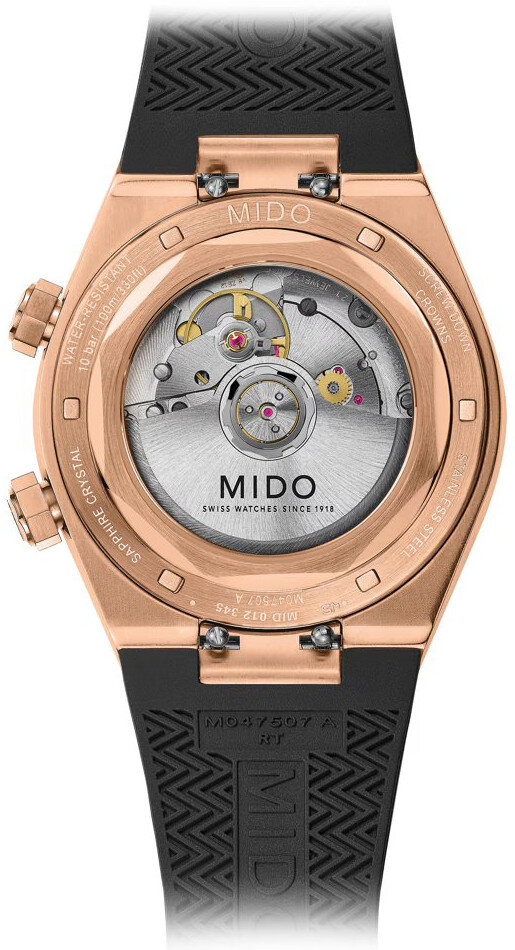 Mechanický s automatickým náťahom. Mido Caliber 72 postavený na ETA 2892-A2, Rezerva chodu 72h, 25.200 BPH (3,5Hz), 21 kameňov