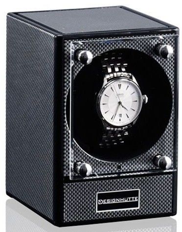 Naťahovač Designhütte Piccolo Modular 70005/81 je skvelý pomocník pre každého milovníka automatických hodiniek. Naťahovač je vyrobený z plastu s dizajnom karbónu. Je určený pre jeden kus hodiniek a využíva prenosnú energiu, čo umožňuje pripojiť ďalšie naťahovače bez potreby robenis ďalšieho adaptéra. Tento systém umožňuje zapojiť až 4 naťahovače. Adaptér nie je súčasťou balenia.