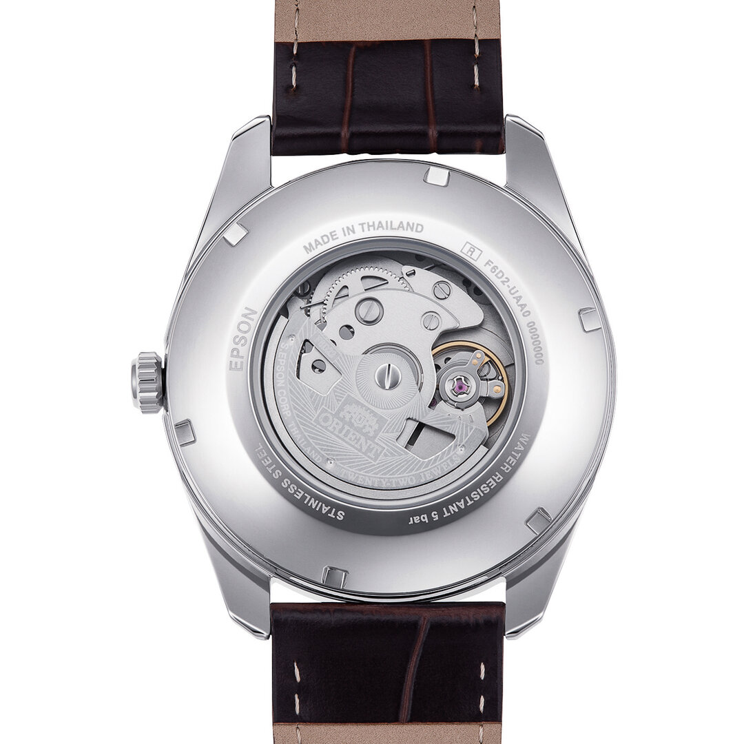 Mechanický s automatickým náťahom. Orient F6D22, Rezerva chodu 40h, 21.600 BPH (3Hz), 22 kameňov, Hacking, Možnosť ručného náťahu